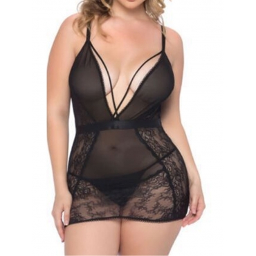 Lovely Sexy Deep V Neck See-through Black Babydoll
