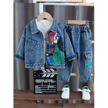Lovely Street Side Pocket Patchwork Blue Boy Two Piece Pants Set