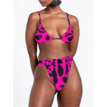 Lovely Sexy Leopard Print Lace-up Rose Red Two-piece Swimsuit