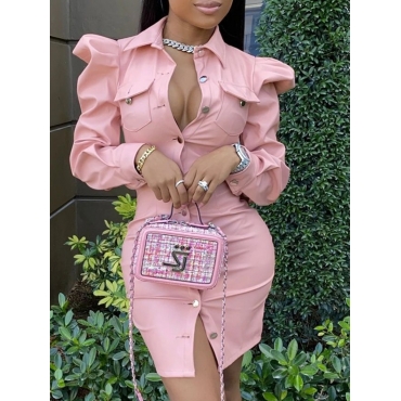 Lovely Stylish Button Ruffle Design Pink Leather