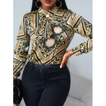 Lovely Street Half A Turtleneck Print Yellow Blouse