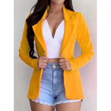 Lovely Work Turndown Collar Long Sleeve Yellow Blazer