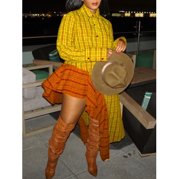 Lovely Casual Plaid Print Asymmetrical Yellow Ankle Length Dress