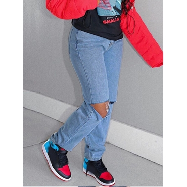 Lovely Casual Hollow-out Blue Plus Size Jeans