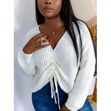 Lovely Street V Neck Fold Design White Sweater