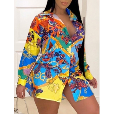 Lovely Casual Turndown Collar Print Multicolor Mini Plus Size Dress