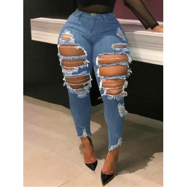 Lovely Casual Hollow-out Baby Blue Jeans