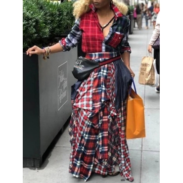Lovely Casual Grid Print Patchwork Red Plus Size Skirt