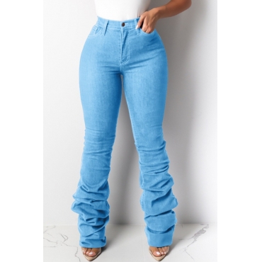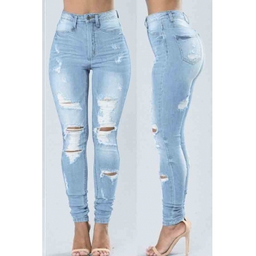 Lovely Stylish High-waisted Broken Holes Baby Blue Jeans
