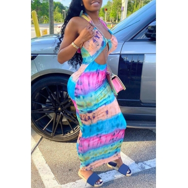 Lovely Bohemian Tie-dye Skyblue Ankle Length Dress