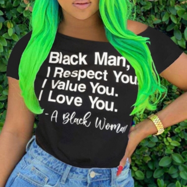 Lovely Leisure O Neck Letter Print Black T-shirt