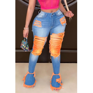 Lovely Trendy Broken Holes Deep Orange Jeans