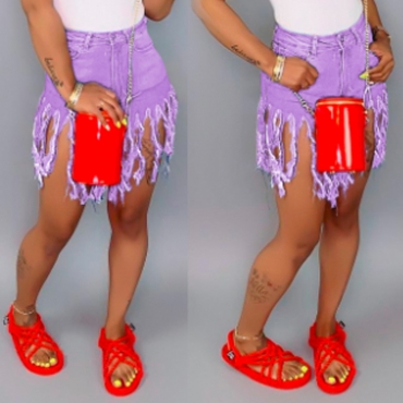 Lovely Stylish Tassel Design Purple Denim Shorts