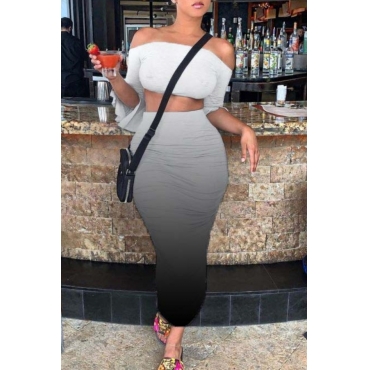 Lovely Trendy Dew Shoulder Gradual Change Black Two-piece Skirt Set