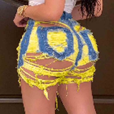 Lovely Stylish Broken Holes Yellow Denim Shorts