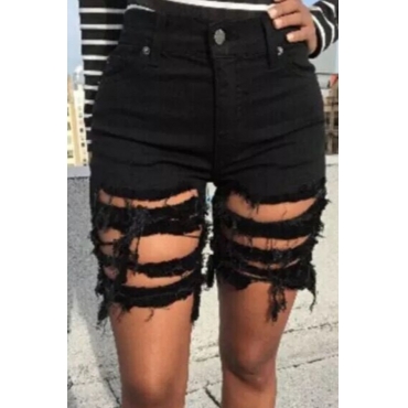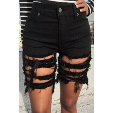 Lovely Sexy Hollow-out Carbon Black Denim Shorts