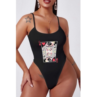 Lovely Casual Spaghetti Strap Black Bodysuits