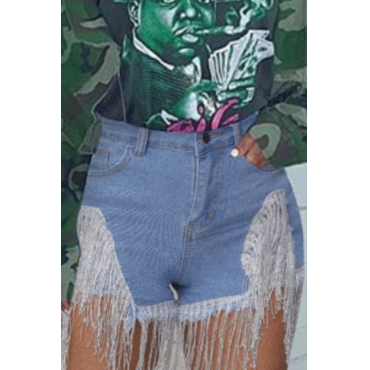 Lovely Trendy Broken Holes Tassel Design Babyblue Denim Shorts
