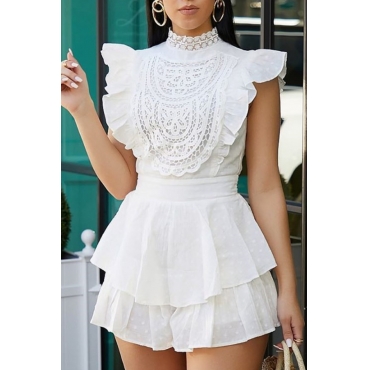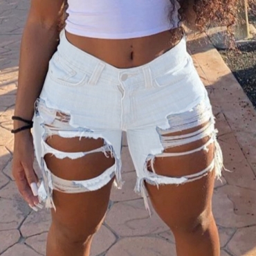 Lovely Sexy Hollow-out Creamy White Denim Shorts