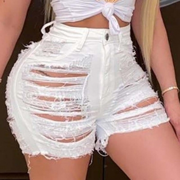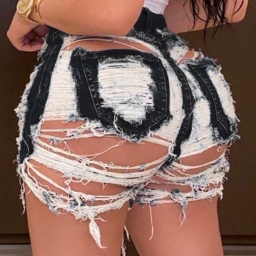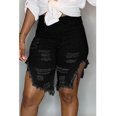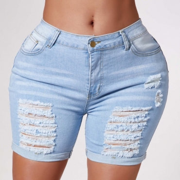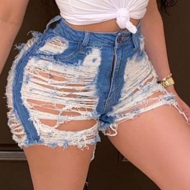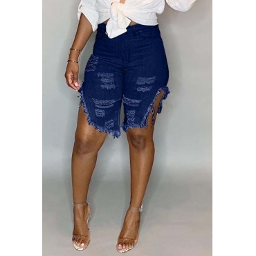 Lovely Trendy Broken Holes Deep Blue Shorts