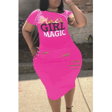 Lovely Casual Hollow-out Rose Red Knee Length Plus Size Dress