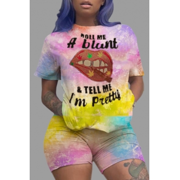 Lovely Casual Lip Print Yellow Plus Size Two-piece Shorts Set