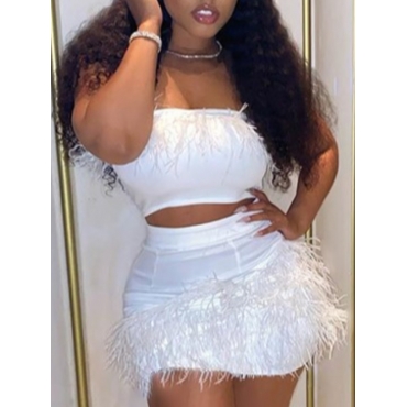 Lovely Sexy Patchwork White Two-piece Skirt Set