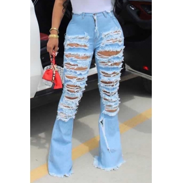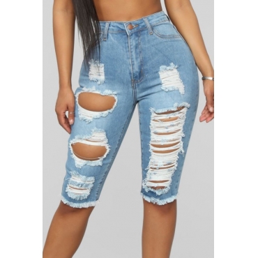 Lovely Stylish Broken Holes Deep Blue Knee Length Plus Size Dress