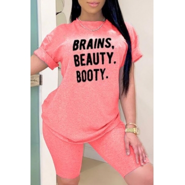 Lovely Casual Letter Print Pink Two-piece Shorts Set