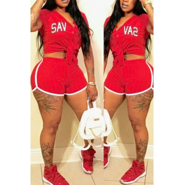 Lovely Casual Letter Print Red Two-piece Shorts Set