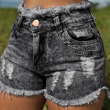 Lovely Stylish Broken Holes Black Plus Size Shorts