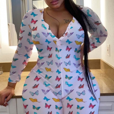 Lovely Casual Butterfly Print White Plus Size One-piece Jumpsuit