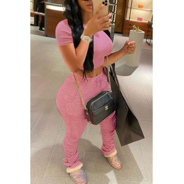Lovely Casual Fold Design Pink Two-piece Pants Set