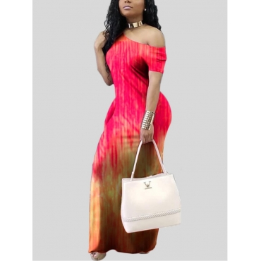 Lovely Boho O Neck Tie-dye Red Maxi Dress