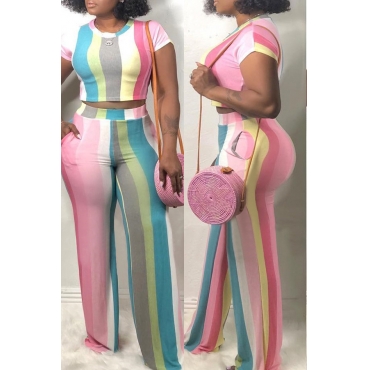 Lovely Casual Striped Yellow Two-piece Pants Set