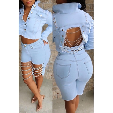 Lovely Trendy Hollow-out Baby Blue Shorts