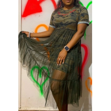Lovely Casual Camo Print Knee Length T-shirt Dress