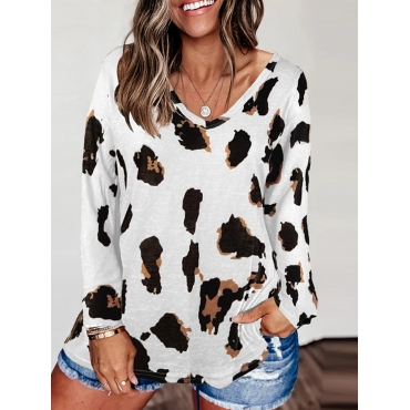 Lovely Casual O Neck Leopard Print Plus Size T-shirt
