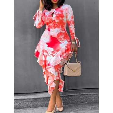 Lovely Trendy O Neck Print Red Mid Calf Plus Size Dress