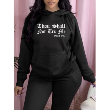 Lovely Leisure Hooded Collar Letter Print Black Hoodie