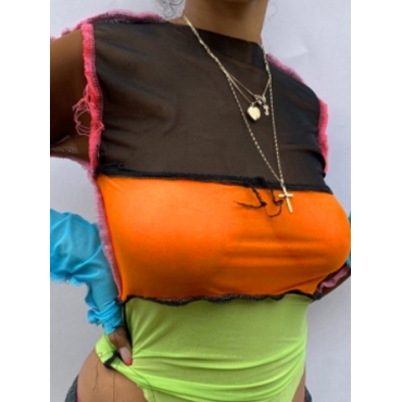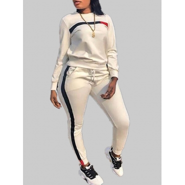 Lovely Leisure O Neck Patchwork White Plus Size Two-piece Pants Set