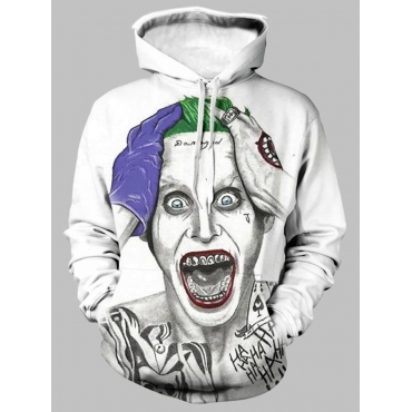 Lovely Street Hooded Collar Clown Print White Men Hoodie
