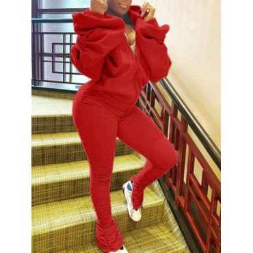 Lovely Sportswear Hooded Collar Fold Design Red Two Piece Pants Set