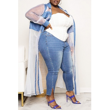 Lovely Trendy Broken Holes Baby Blue Plus Size Jeans