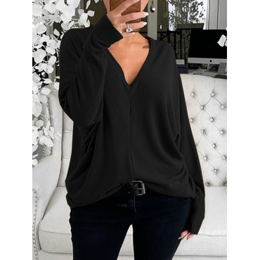 Lovely Casual V Neck Loose Black Plus Size T-shirt