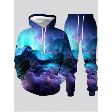 Lovely Street Hooded Collar Tie-dye Multicolor Men Two-piece Pants Set