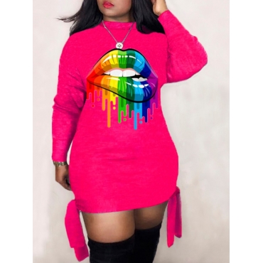 Lovely Casual O Neck Print Rose Red Mini Dress
