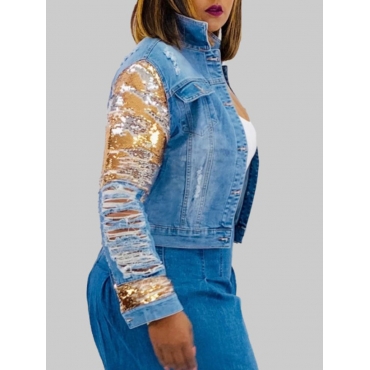Lovely Casual Turndown Collar Patchwork Blue Plus Size Denim Jacket