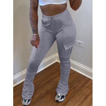 Lovely Sportswear Striped Light Grey Two Piece Pants Set