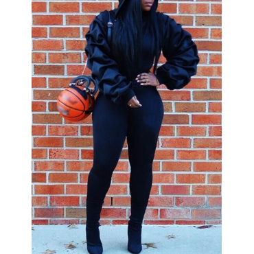 Lovely Trendy Patchwork Zipper Design Black Two Piece Pants Set